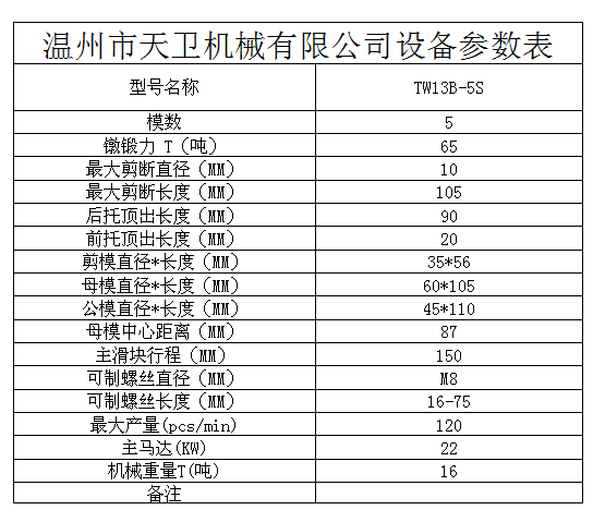 您當(dāng)前的位置:首頁 / 產(chǎn)品中心 / 五模五沖多工位冷鐓機 / └ TW13B(M8)多工位冷鐓機 / TW13B-5S全自動多工位冷鐓機